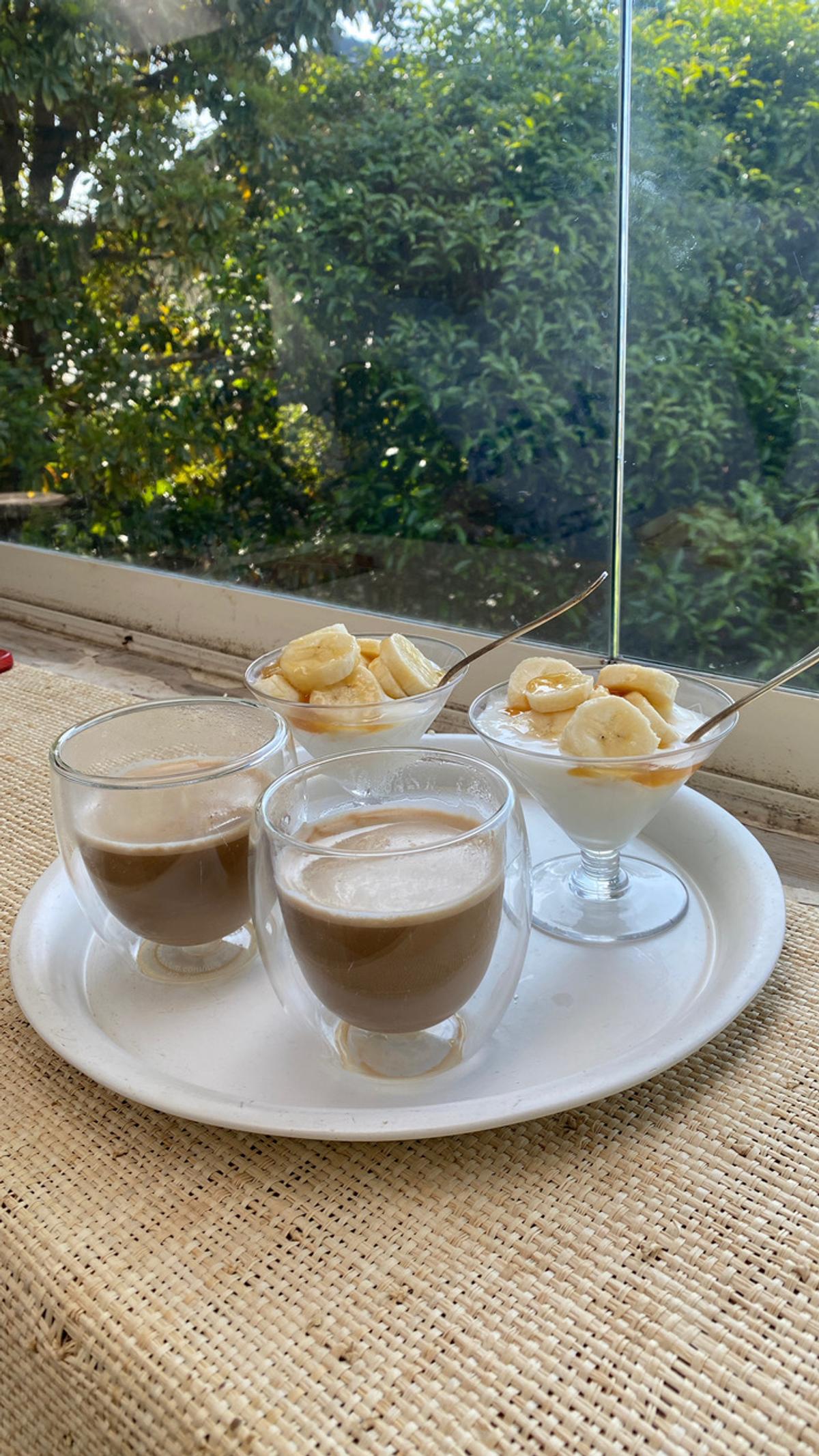 café au lait、yoghurts+banana
