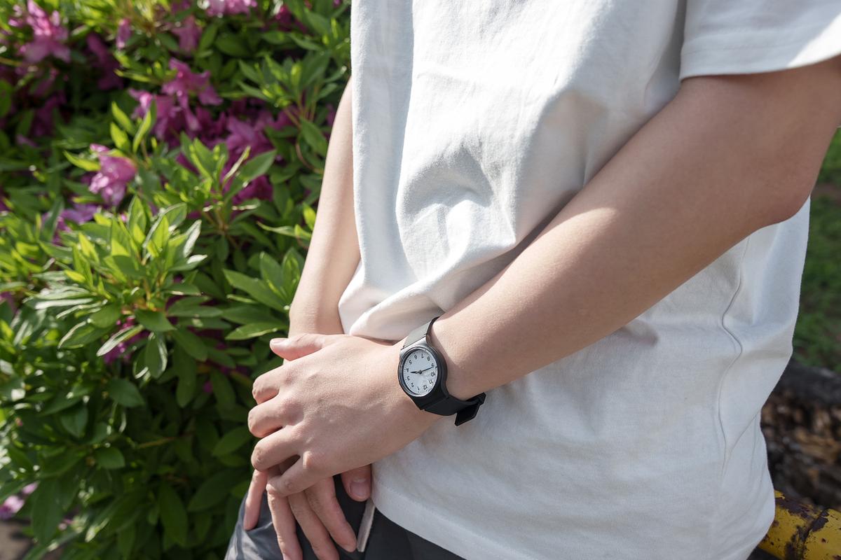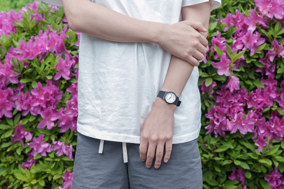 今回選んだのは白文字盤。カラーは白と黒の2色展開で、どちらもクセがなく使いやすい印象。