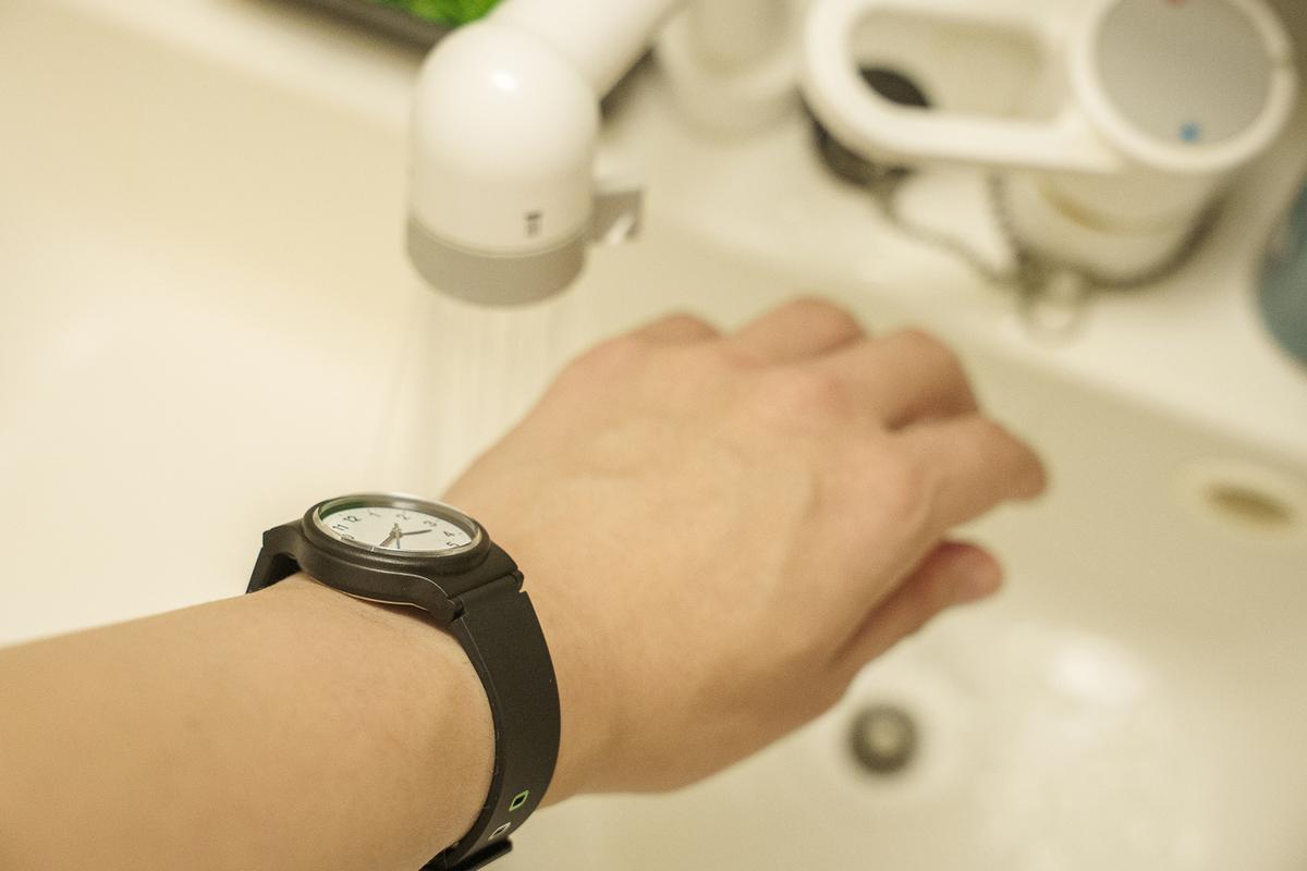 10気圧防水なので、手洗いや雨はもちろん、水仕事のときも気にせずそのまま使えるタフさを兼ね備えているんです。水泳までOKというのだから驚き。