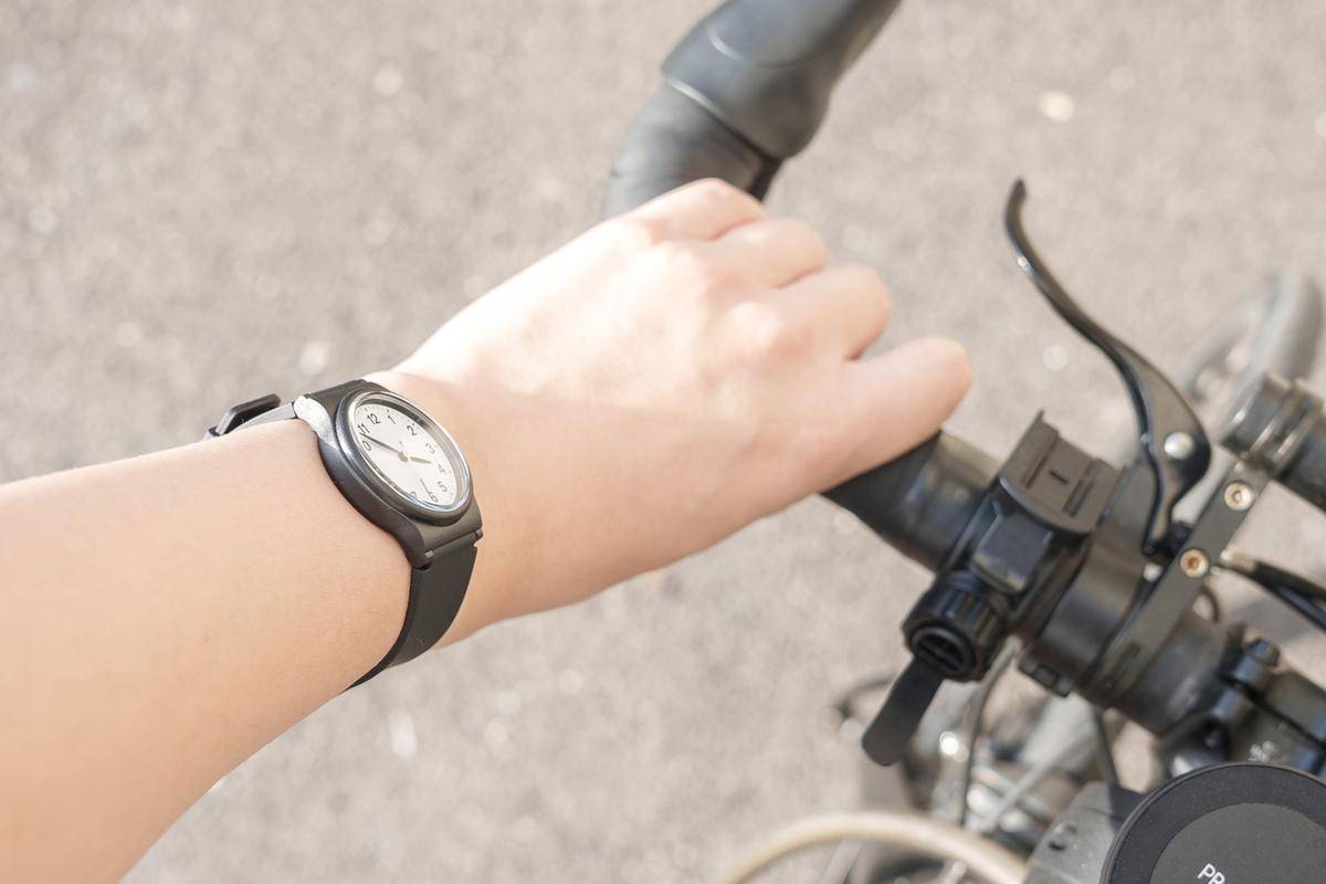 さらに、サイクリングはどうしても木の枝や壁に腕がぶつかったり、バイクラックに当てたりと傷のリスクがつきもの……。高い時計だとそのたびにヒヤッとするんですが、これは価格も手伝ってそこまで気にならない。