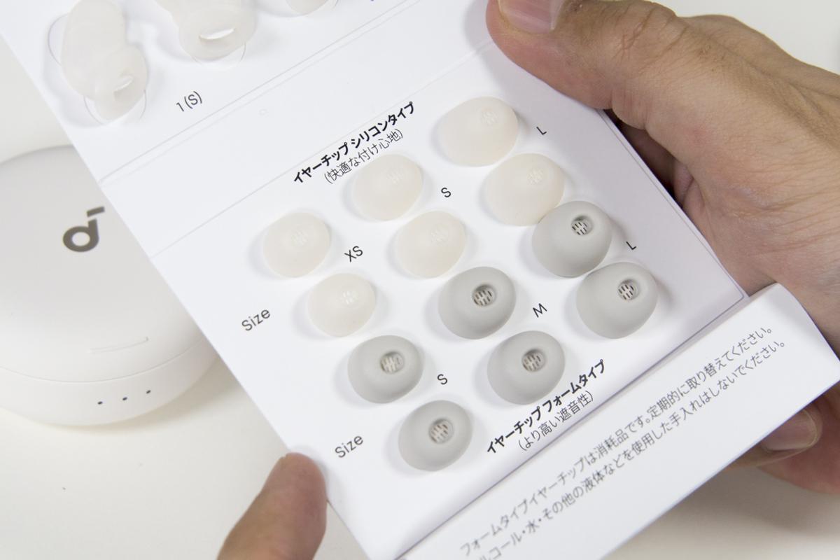 イヤーチップは優しい装着感のシリコン製と、静音性が高いフォームタイプのものが同梱されているので、好みに合わせて交換できるようになっています。