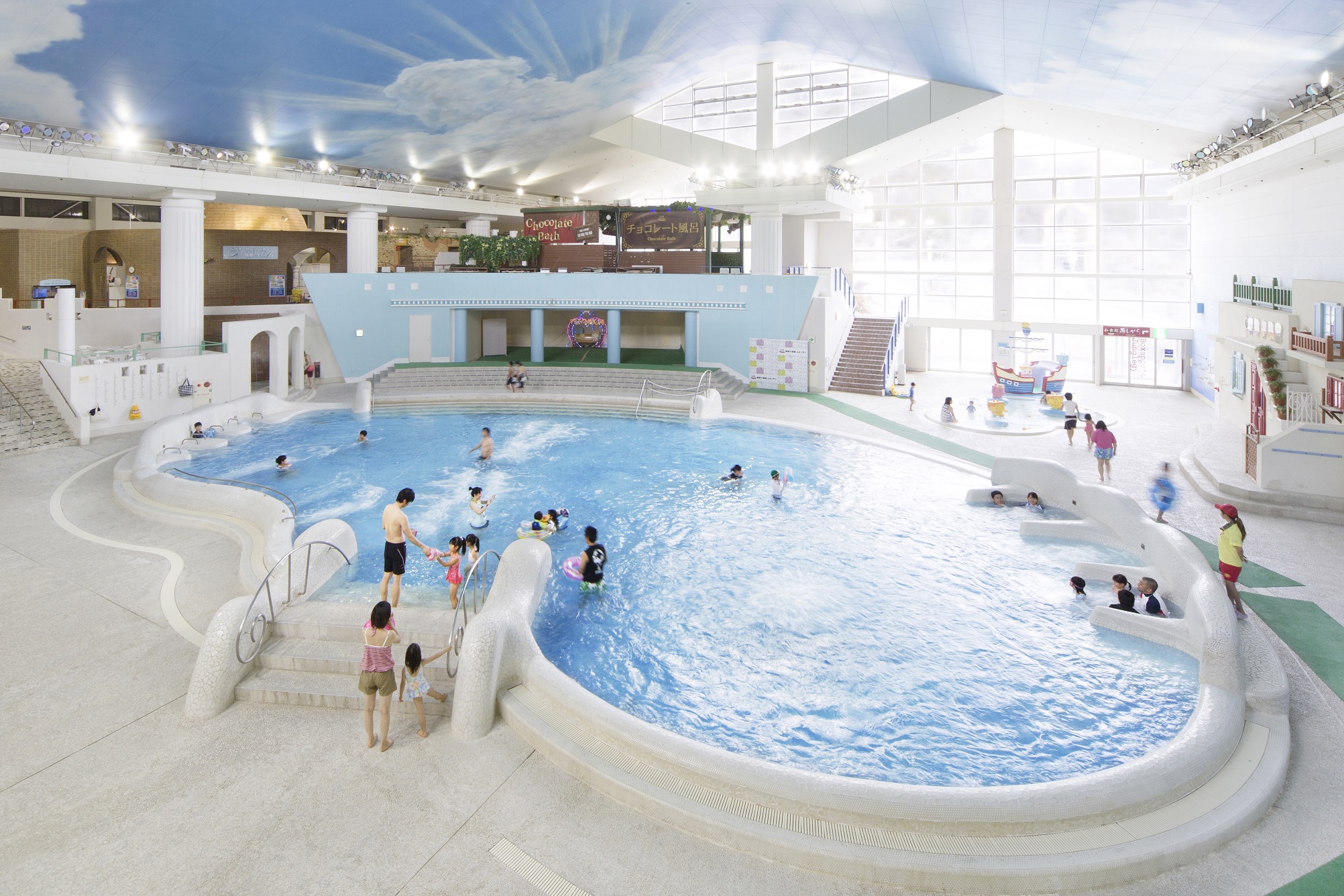 東京都の豊島園駅から徒歩1分の好立地、としまえんで遊んだあとに混浴なんていかがでしょうか。四季の移ろいを楽しめる日本庭園を目の前に、水着着用で楽しめるバーデゾーンは広々としたバーデプールだけでなく、屋外ジャグジー、フィンランドサウナなど充実度満点。インストラクターと一緒に健康づくりができるプログラムも。