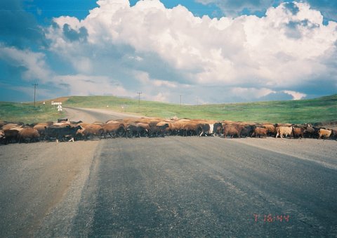おいおい、こんな心和む雄大な風景になんと不釣合いな道路事情なんだ。こんな物騒な道を本当にリュックサック背負ってのうのうと歩いていてだいじょうぶなのかよ。