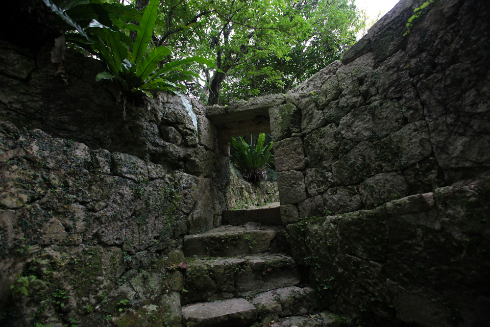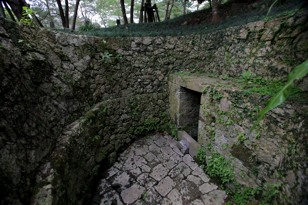 現在残っている森の川の石積みと隣の「西森御嶽」の石門は、奥間大親の末裔である向氏(しょううじ)伊江家の人々が1725年に整備したものですが、沖縄戦でも破壊されることなく今でも往時のままの面影を残しています。そして森の川は、今でもコンコンと清水が湧き出しています。