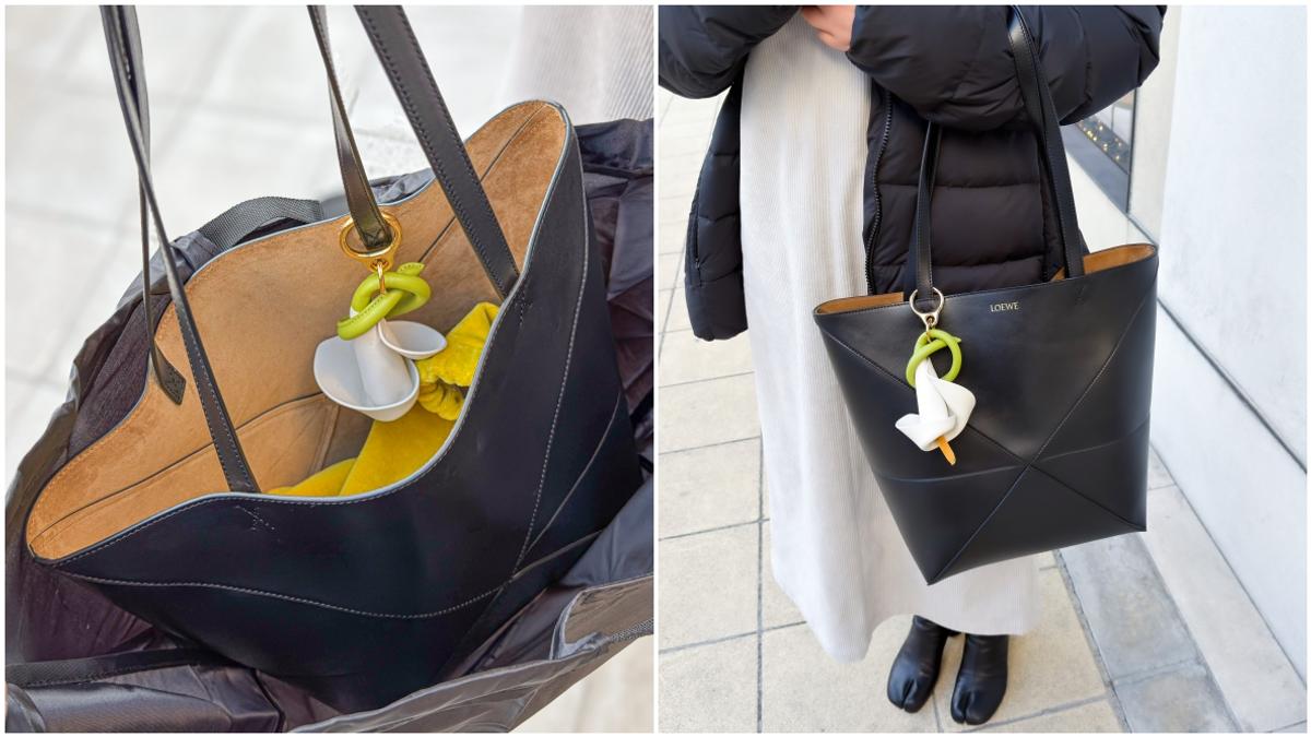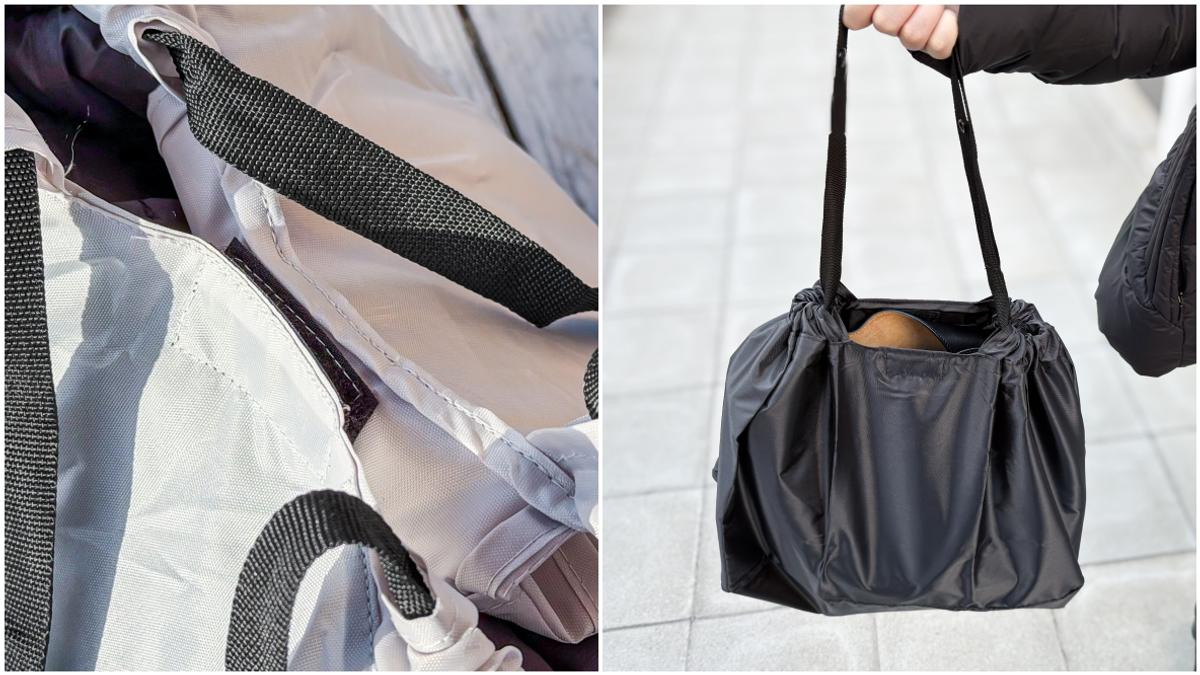 巾着の紐がそのまま持ち手になるため、バッグを覆ったまま手に提げて歩けます。
