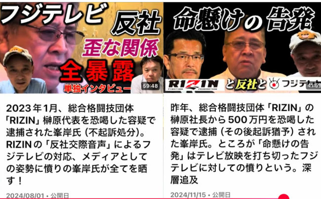 それは、本紙が独占して報じている、格闘技団体「RIZIN」の試合放映(現在は中止)に関するフジTVと反社会勢力との手打ち疑惑だ。