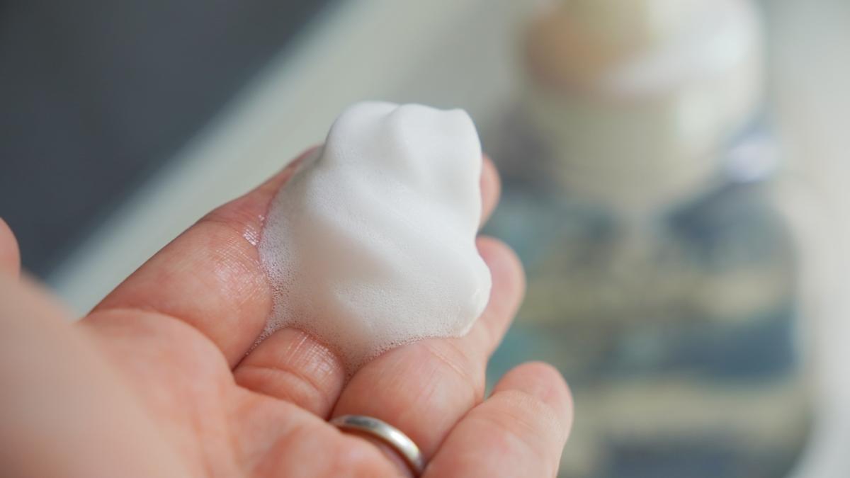 パッケージからして涼やかで目を惹くデザイン。このワイドポンプがすごくて、ポンプからぎゅっとツノ立ち生クリーム泡が出てきます。そのキメ細やかさは、さすが信頼感あるビオレのクオリティです。