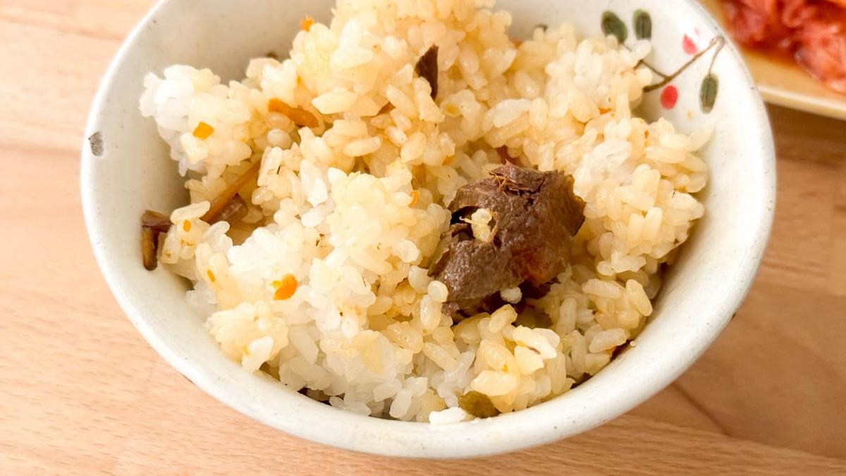 作り方は簡単で、これを炊きたてのごはんに入れて混ぜるだけ。炊き込みごはんよりもずっと楽ちんです。