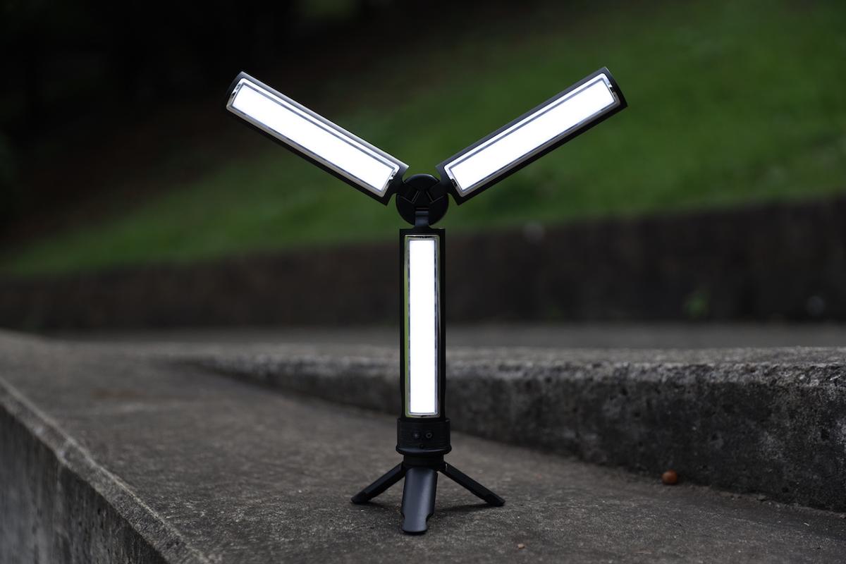 3つのライトが自由に開閉する折りたたみ式多段変形なので、手元だけを明るく照らしたり、上向きにしたり、光が欲しい部分を狙うことができちゃいます。
