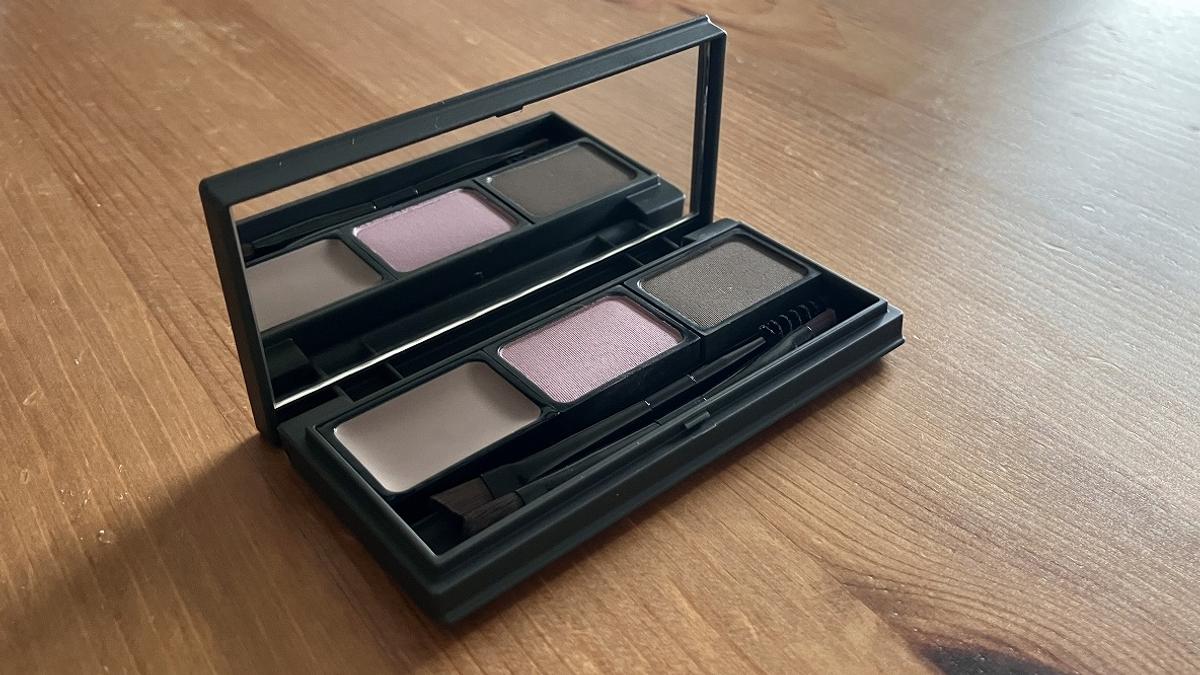 目をひく真ん中のラベンダーは一見奇抜ですが、実際に眉にのせると自然になじみ、軽やかなニュアンスが生まれます。