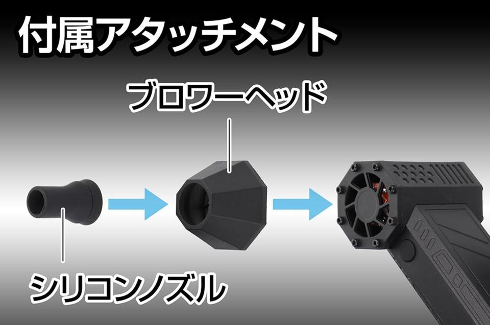 ブロワーヘッドとシリコンノズルも付属しているから、用途に合わせて使い分けができて便利。