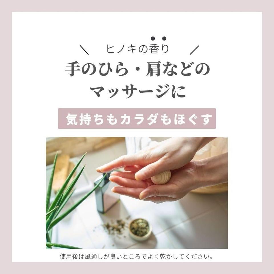 「ヒノキボール」は湯船に浮かべるだけでなく、腕や肩のマッサージボールとしても活躍。