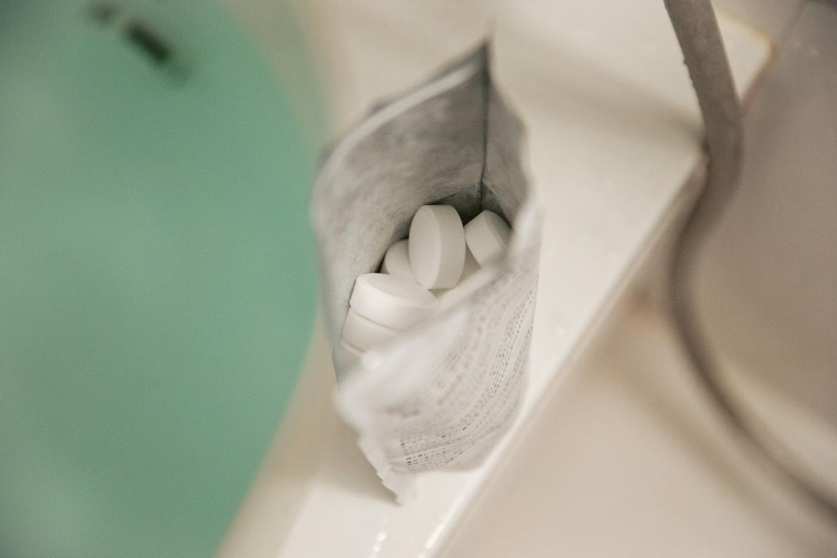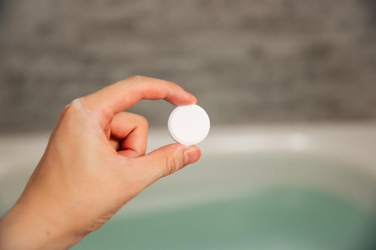 実際に使うときは、ぬるめのお湯(37〜40℃)約160Lに3錠を目安に溶かして待てばOK。