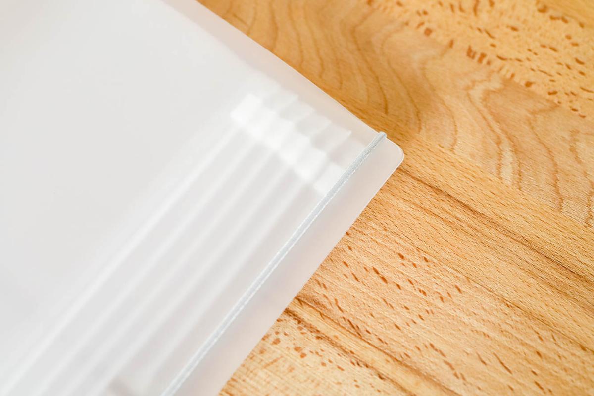 マチはありませんがゆとりがあるので、厚みのあるシールを入れても大丈夫。