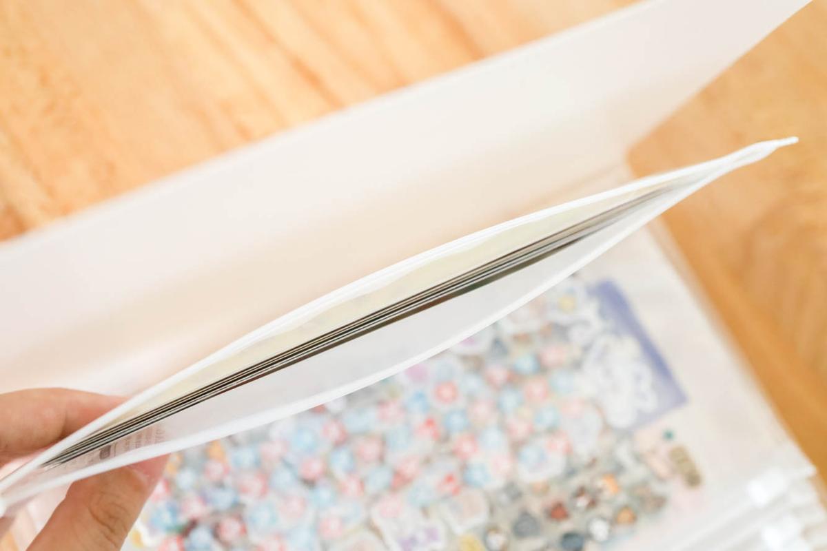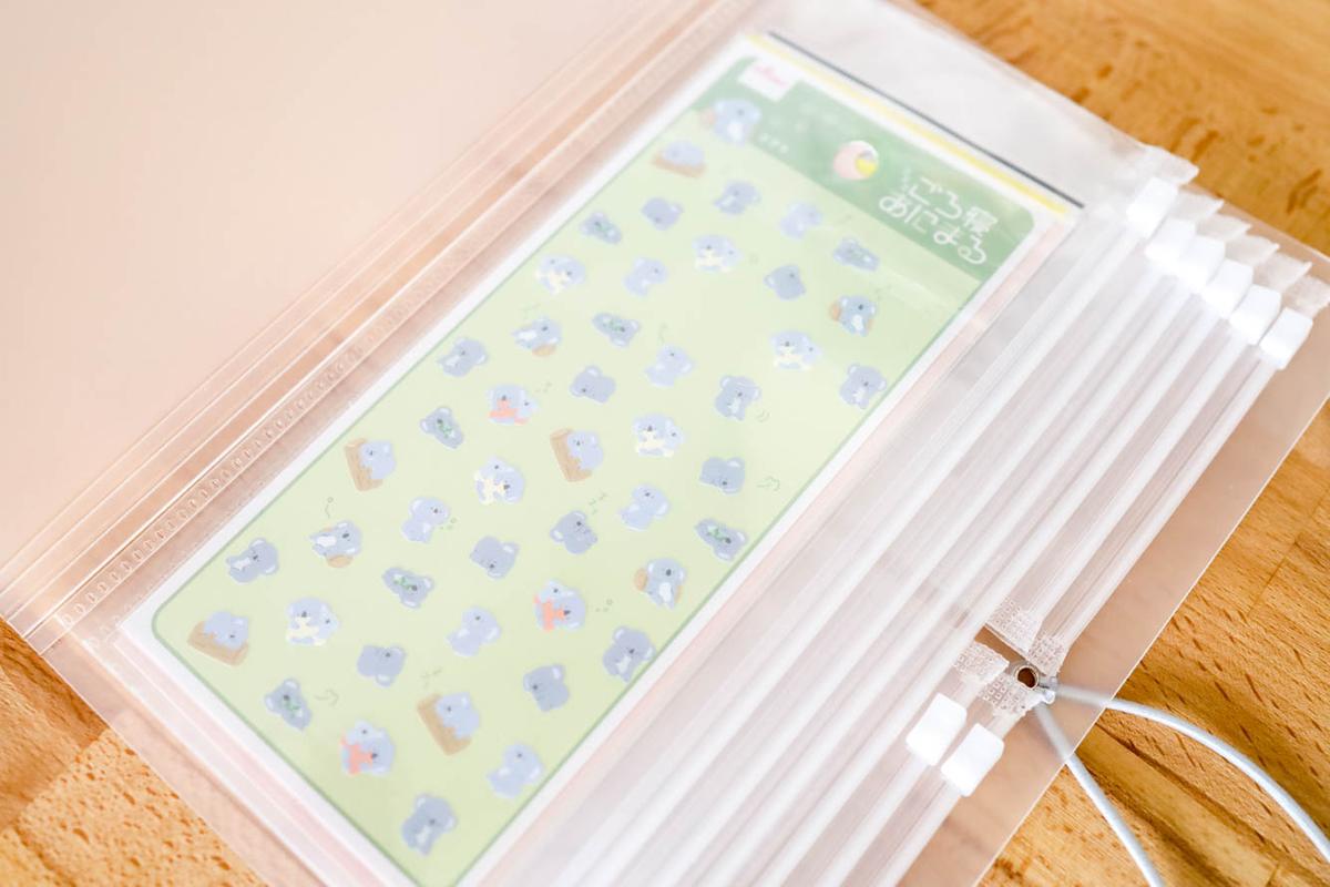 厚みのないタイプのシートシールを6枚入れてみましたが、まだまだ入りそう。