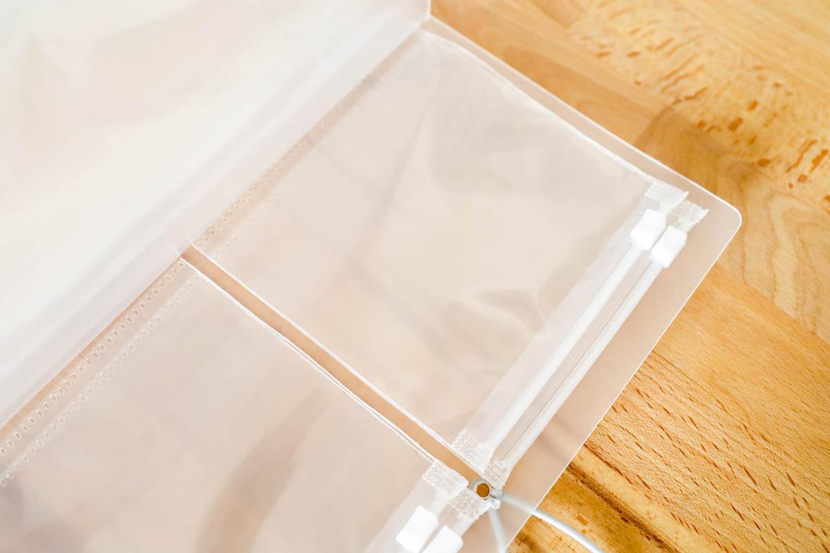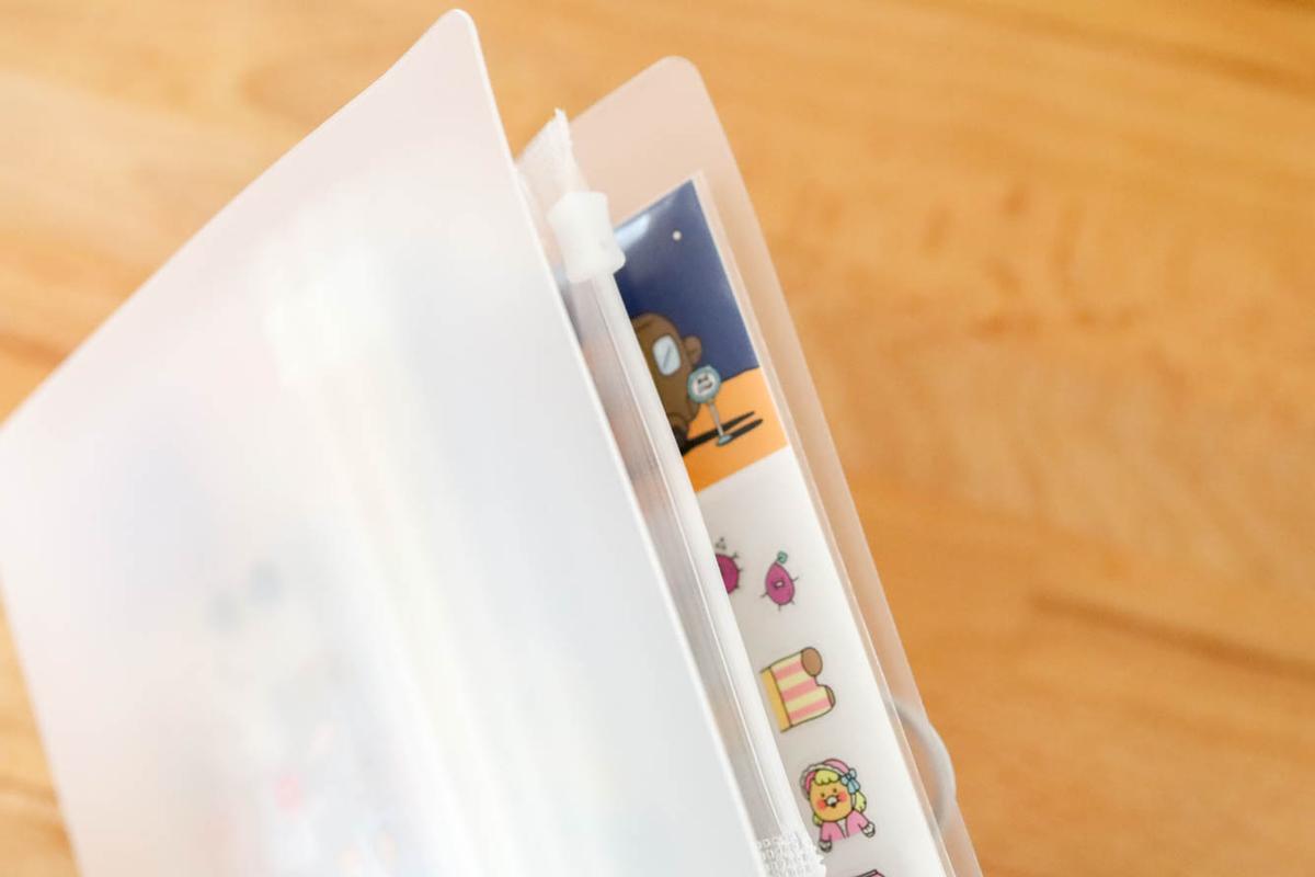 各ポケットにスライダーが付いているので、細かいシールも飛び出してしまう心配がなく安心です。