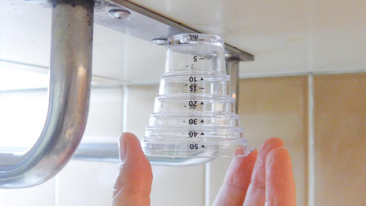遠目から見ると、まさかそこに計量カップがあるとは思えない場所です。
