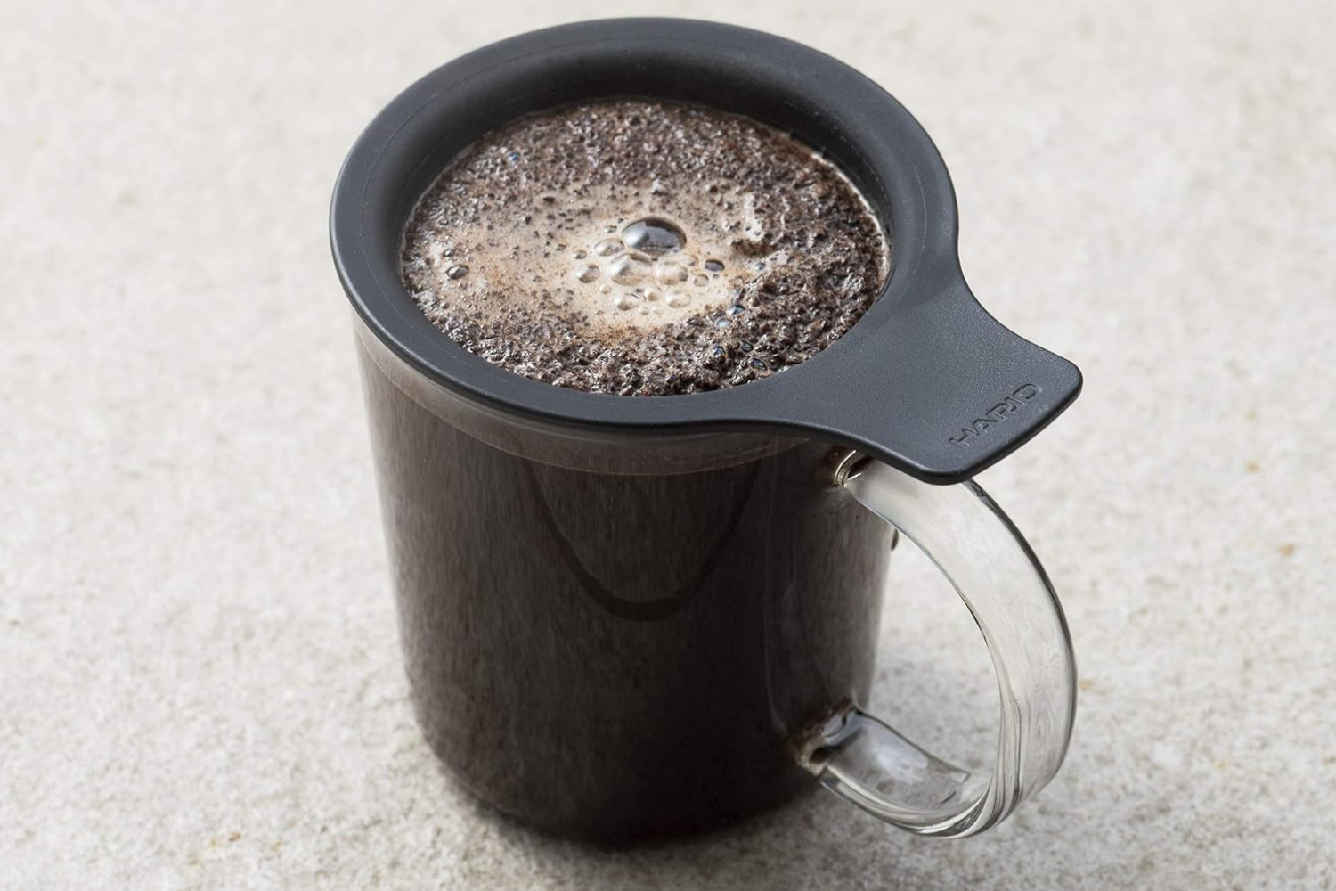 使い方は簡単。ストレーナーをグラスにセットし、コーヒー粉をストレーナーに入れます。