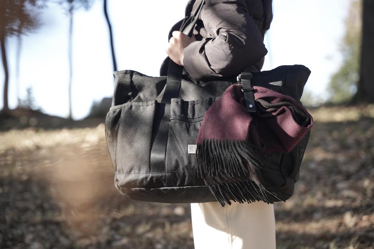 スタイリッシュなトートは収納力を犠牲にしていることも多いのですが、このバッグは正面に4つのポケットがあり、使い勝手の面でも優秀。