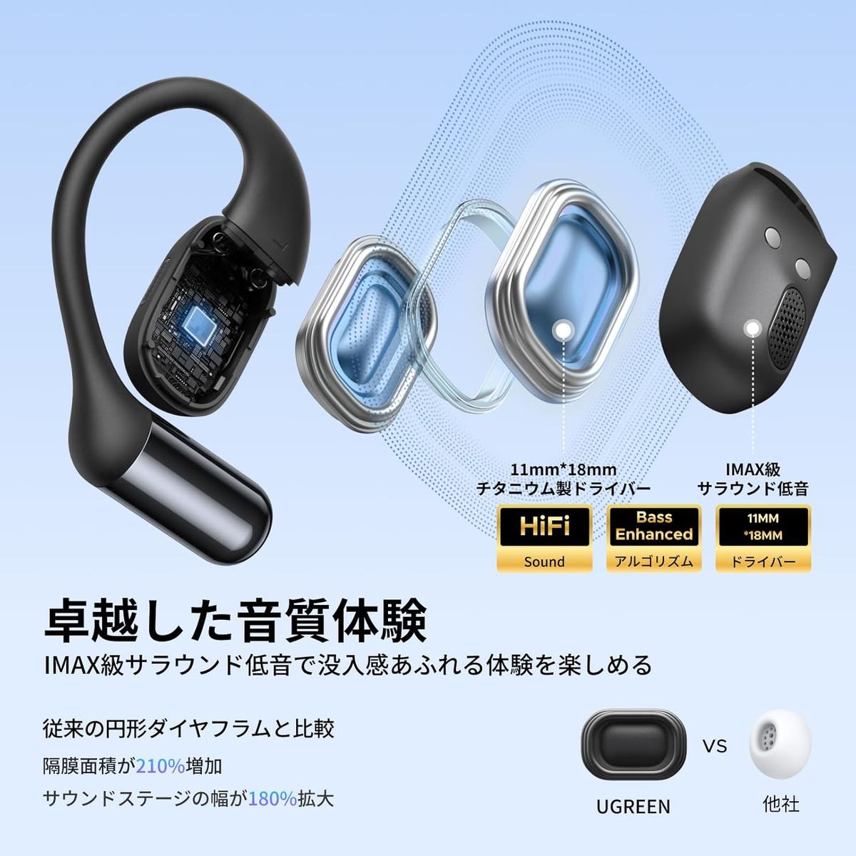 「オープンイヤー型は周りの音が聞こえて安全だけど、音質や音漏れがちょっと…」。そんな悩みに応えてくれるのが、このUGREEN(ユーグリーン)のオープンイヤー型ワイヤレスイヤホン「HiTune S7」です。