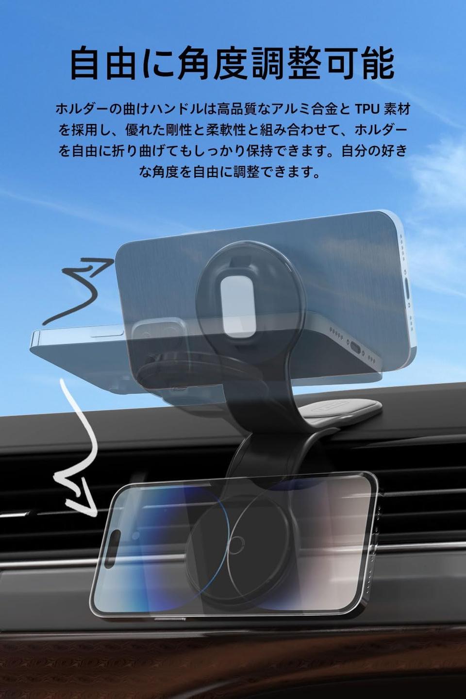 ホルダーには52Nグレードの超強力磁石を搭載。急なカーブや段差でもスマホがズレる心配なし。