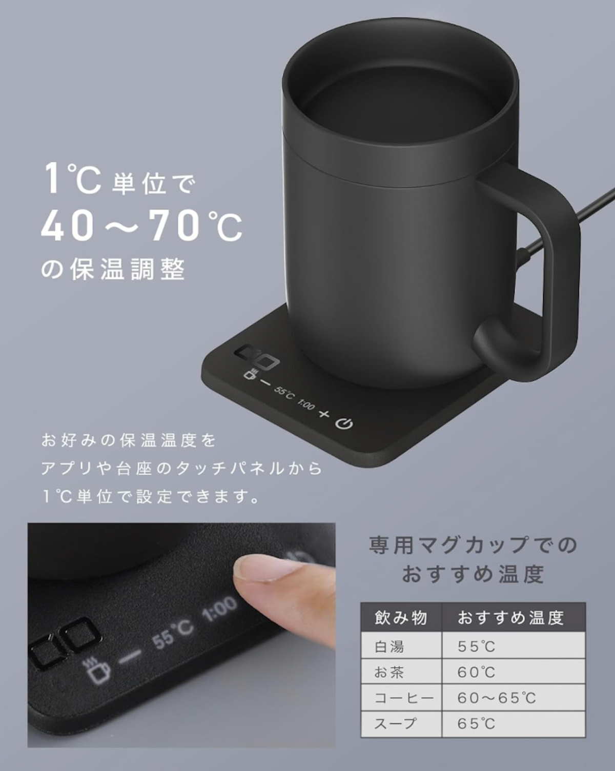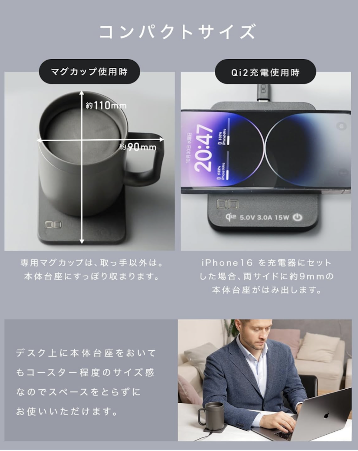 このマグウォーマーは飲み物を自分好みの温度に保てるだけでなく、スマホの充電までできてしまう優れモノ。