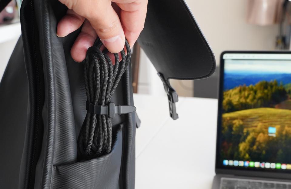 持ち運びしやすい、ケーブルバンドも標準付属。キレイ&コンパクトに持ち運ぶことができるのも気に入っています。
