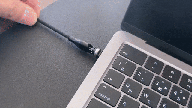 コネクタ部分が柔軟に稼働するため、ケーブルに意図せずテンションがかかってもコネクタやPCへの負荷がかかりにくくなっています(あくまでも「かかりにくい」なので負荷がかからないわけではありませんが…)。