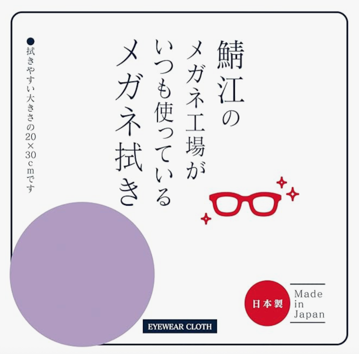 その商品名の通り、鯖江のメガネ工場で使われているクロスが商品化したもので、しずく型”の極細繊維が微細な凹凸をメガネを傷つけずに指紋や汚れをふき取ってくれます。