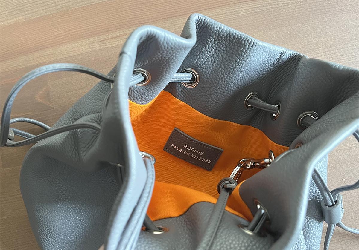このバッグ、なんとパトリックステファンとROOMIEのコラボモデルなんです。裏地にロゴが入っているのもポイント。