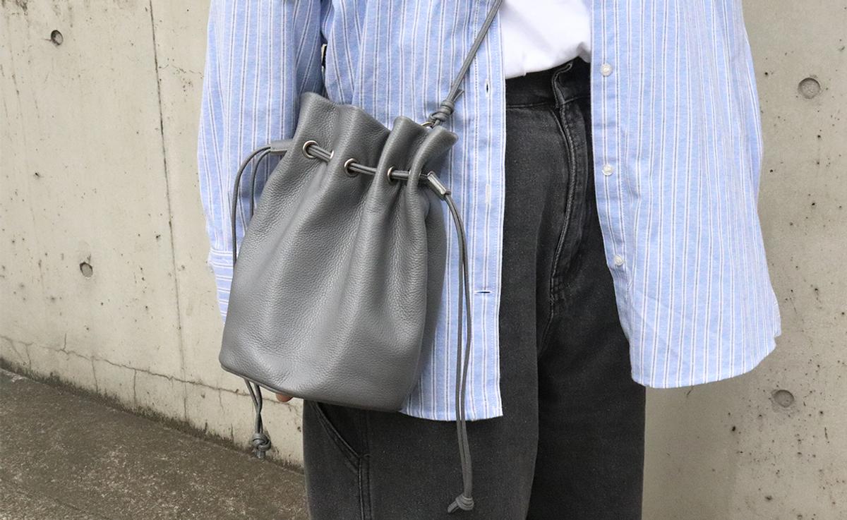 それが「Migaru GRAY-BAG」。フランス出身デザイナーが日本で立ち上げたブランド「パトリックステファン」と、ROOMIEが共同で作り上げた巾着バッグです。