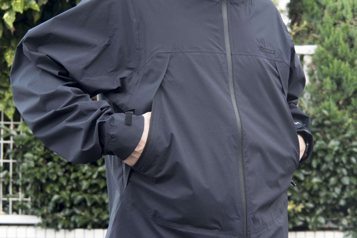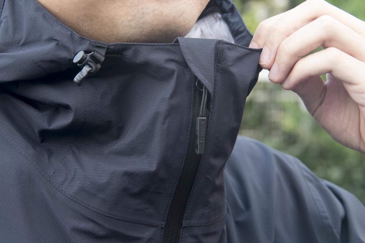 20デニールのナイロンリップストップ素材に、マーモット独自のメンブレン、7デニールのトリコット生地を使った3層構造のシェルなのですが、着てみると生地が柔らかく軽い着心地。