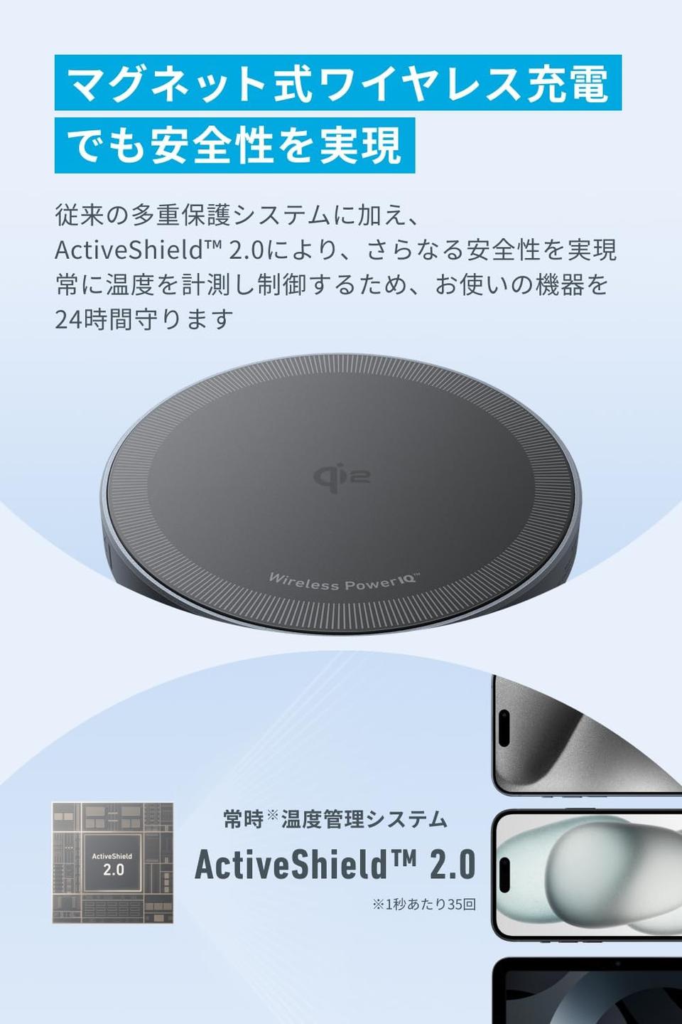継続的な温度管理機能と出力制御により、充電する機器を保護する「ActiveShield 2.0」を搭載。