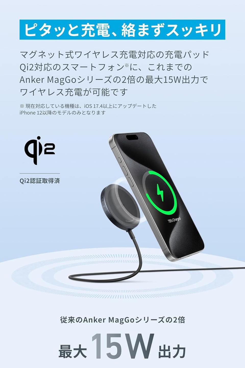 本日2025年9月23日は、最大15W出力でワイヤレス充電が可能となるAnker(アンカー)の「MagGo Wireless Charger(Pad)」がお得に登場しています。