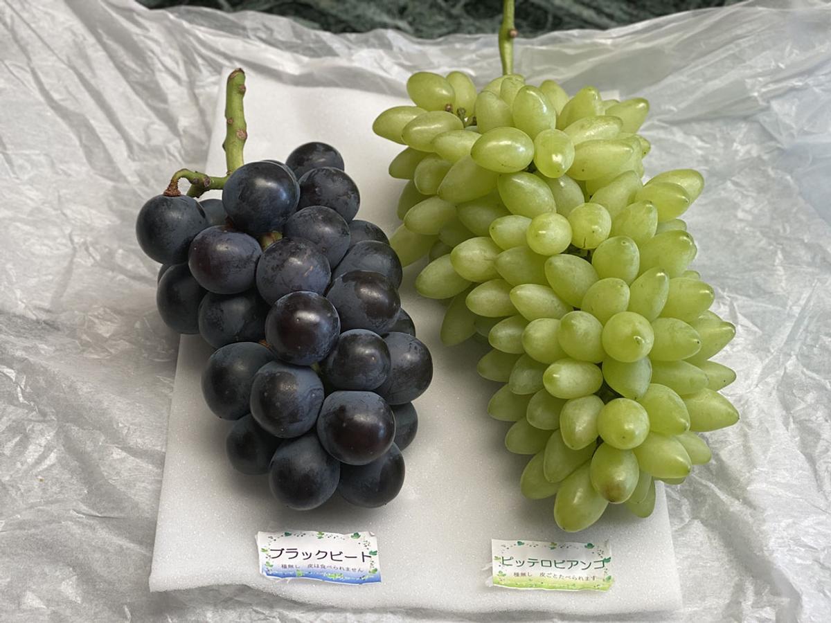 こんなに素晴らしいブドウを向井さんが送ってくれました。ブラックビートとピッテロビアンコ。芸術作品だね! すごい!