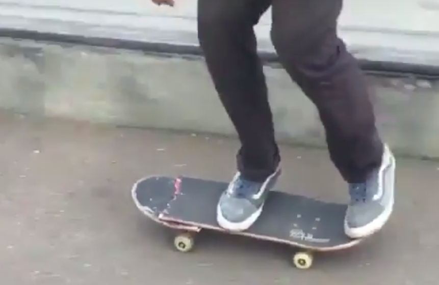 こちらの動画にはとあるスケートボーダーが映っているのだが、どうやらボードが壊れてしまったようで・・・?