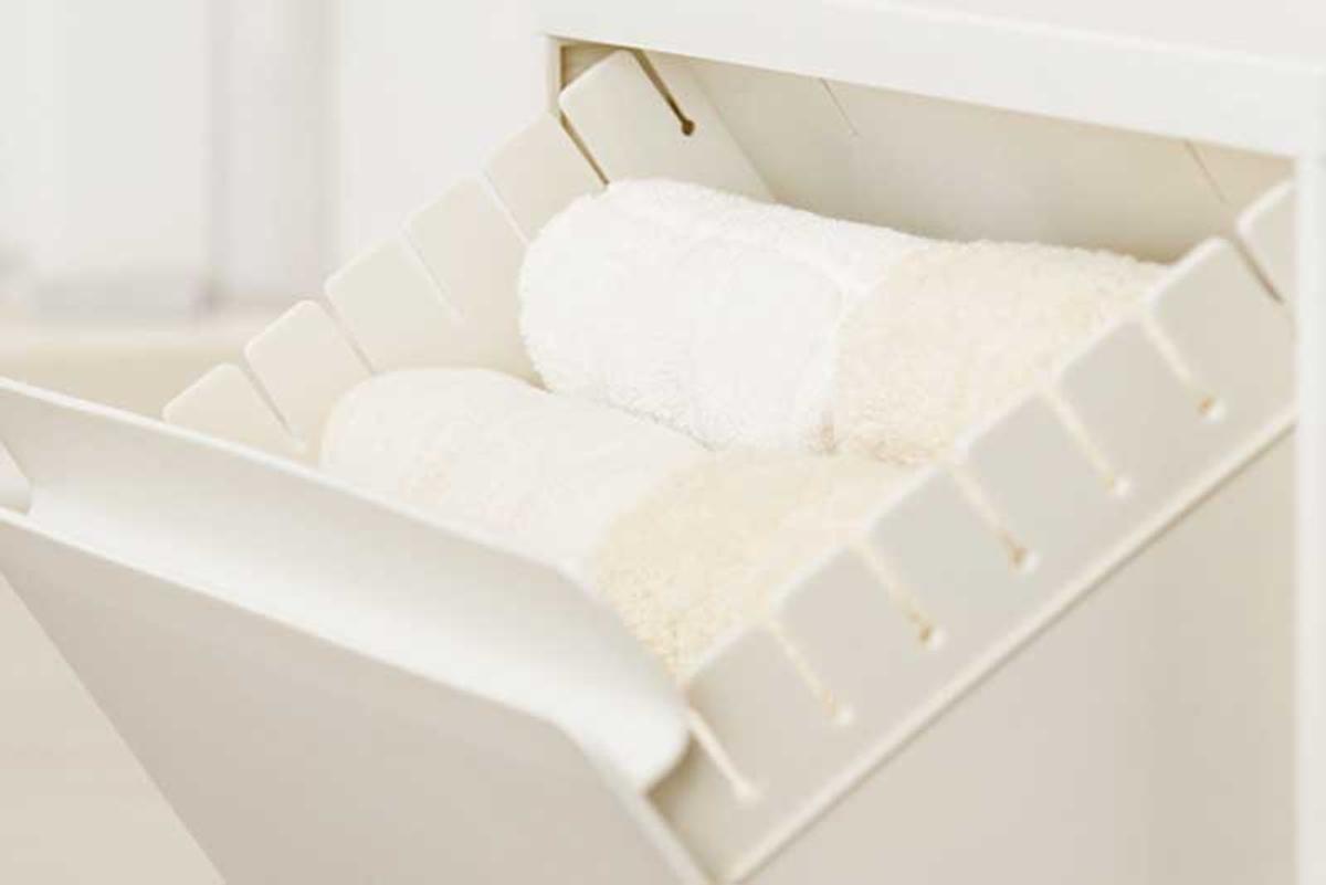 デザインがシンプルかつスリムで場所を取らないので、キッチンだけでなく洗面所やリビングにも違和感なく置けそう。