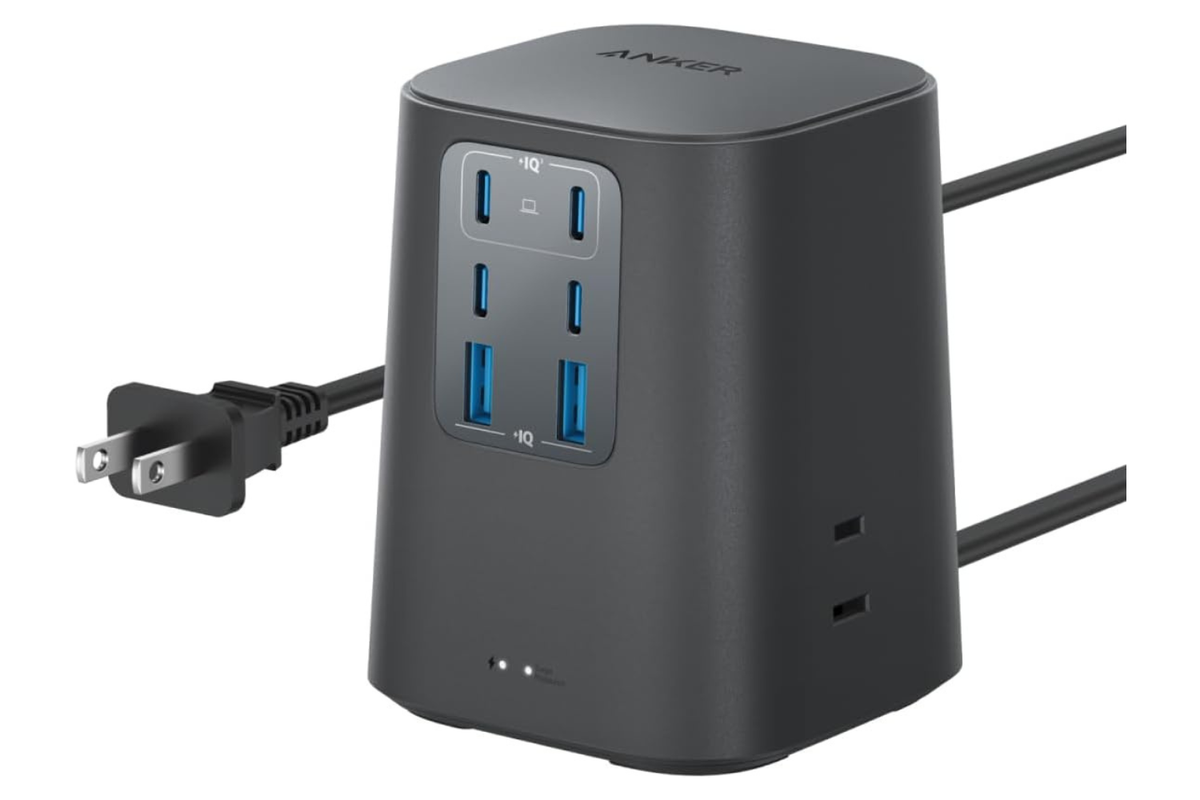 Ankerの「Charging Station (9-in-1, 100W)」は、USB-C×4、USB-A×2、AC差込口×3の合計9ポートを搭載。スマホやタブレット、イヤホンからノートPCまで、最大9台の機器を同時に充電できます。