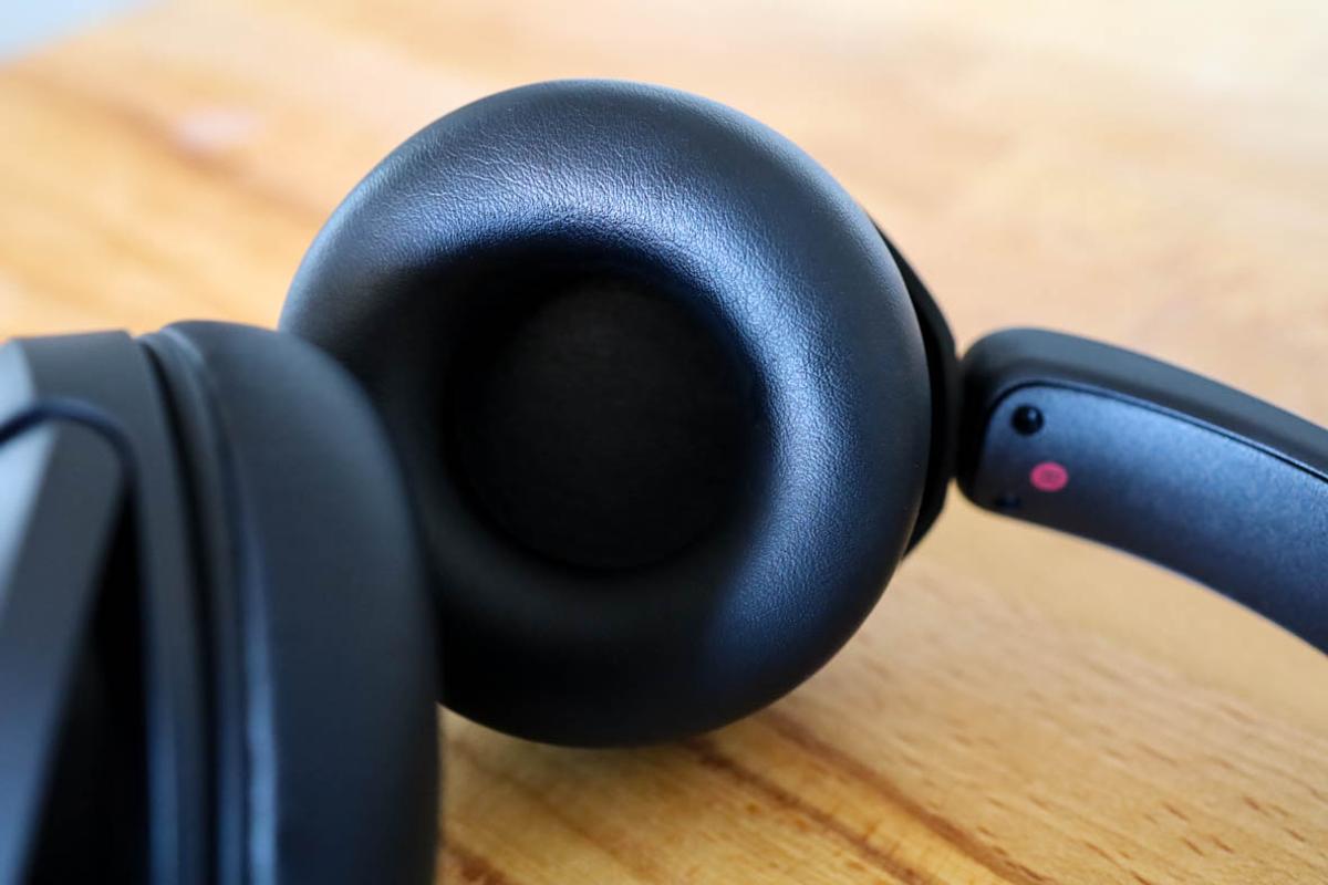 低反撥ウレタンフォームのイヤーパッドはやわらかく、肌あたりもよし。圧迫感も少なめな気がします。