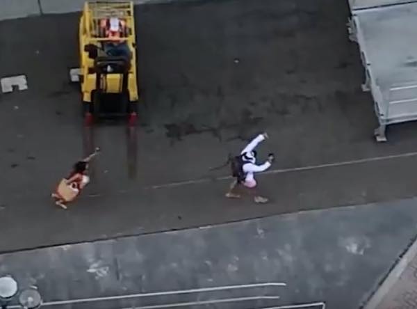近くの作業員にかけ合うも為す術がないようで・・・
