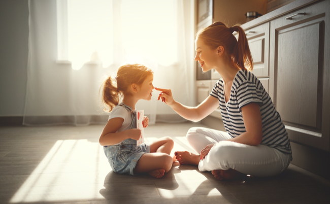 いつもなら「また出せば出しっぱなしで…。これじゃあ、夕食が食べられないでしょ。どんどん片づけしなきゃダメでしょ」などと叱るところです。でも、この日は別の言い方をしようと決めていました。そこで、まず「いっぱい遊べたね」とほめました。すると、娘さんがにこっと笑って「うん」と言いました。