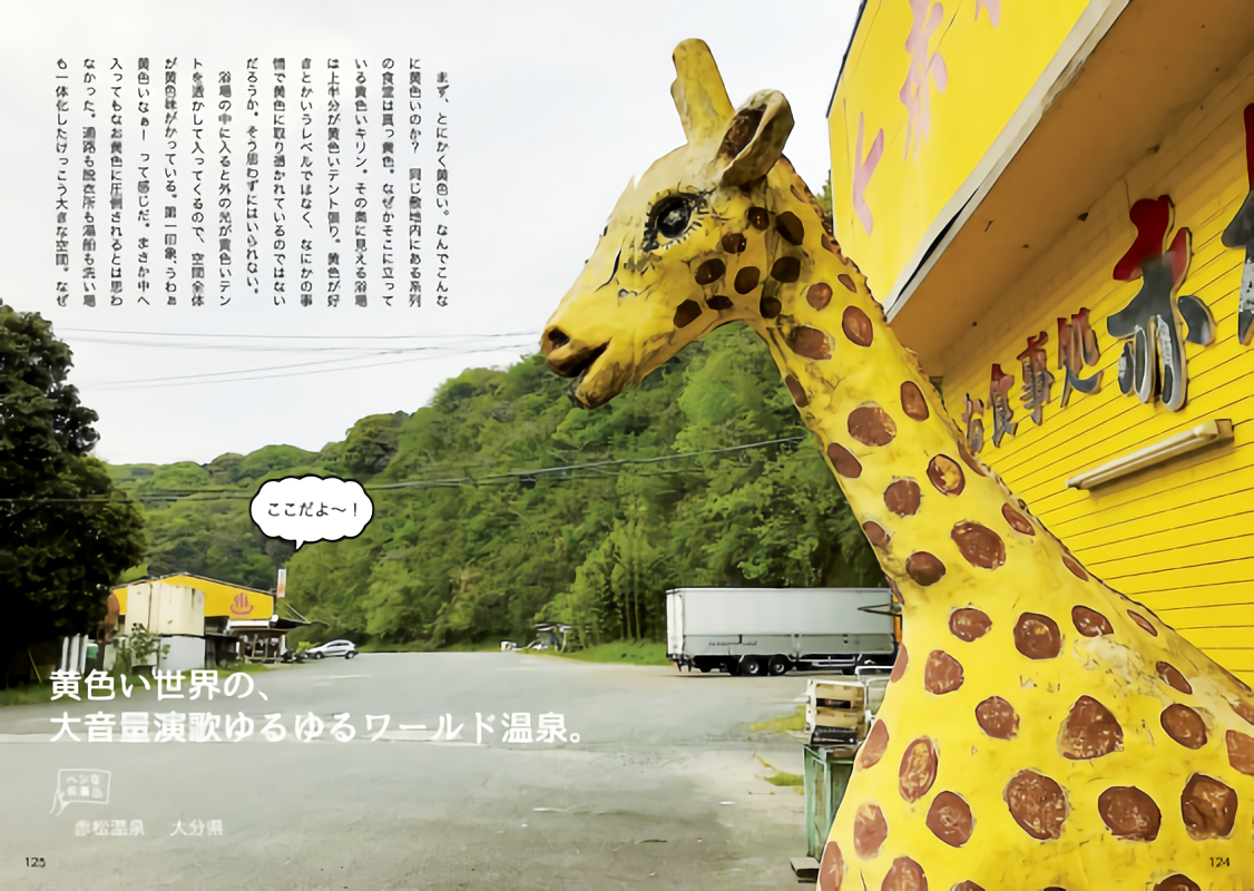 我が国ニッポンは温泉大国。だからなんともフトコロが深い。探してみると、思いもよらない、いろんな温泉があるんです。なんでこんな場所に温泉があるんだろう?なんでこんな湯船なんだろう?なんでこんなにナナメ上にイッちゃってるんだろう?……自動車工場や電気屋さんの中にある温泉、怪しげな宗教施設の祭壇の裏にある温泉、魚の水揚げ用のコンテナが湯船の温泉等々。