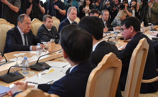 【モスクワ大前仁】河野太郎外相は10日、北方領土問題を含む平和条約交渉を巡り、モスクワでラブロフ露外相と会談した。日本側は当初プーチン露大統領が6月末に訪日する際に平和条約交渉の「大筋合意」を目指していたが、歴史認識や安全保障問題などで隔たりが大きいため、合意を見送る方針。