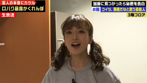 そして、同じく3階に身を潜めていた元NMB48の須藤凜々花は、「コイツ、邪魔だな」と思う芸能人を“通称”で暴露。一瞬で誰だかを理解した加藤と向井は、コメントのしようがないその内容に、思わず「激ヤバ」「すげーとこくるな。フルネームで言えばいいものを、みんなが親しんでる通称で呼びやがった」とコメントし、すぐさま須藤を解放した。