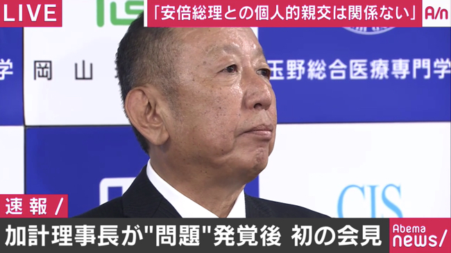 獣医学部の新設をめぐって疑惑の渦中にあった、加計学園の加計孝太郎理事長が19日午前11時より、岡山市内で緊急会見を行なった。
