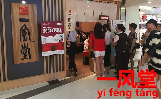 再チャレンジでしっかり、中国人の胃袋をキャッチしているようです! そんな一風堂、訪問した時は昼時と言うこともあり行列が。