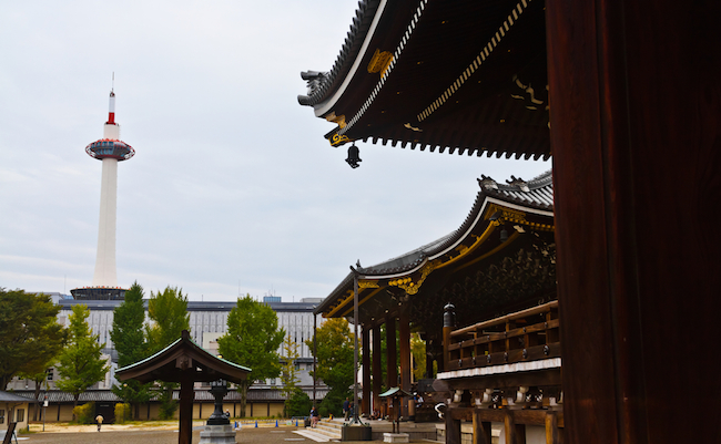 早速参りましょう! まずは京都が誇る新旧のランドマークからご紹介します。五重塔で有名な東寺とロウソクと勘違いされている京都タワーです。