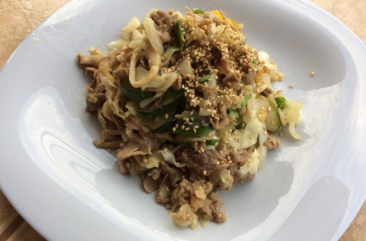 お肉は豚小間でもいいですし、鶏でも牛肉でもOKですが、火が通りやすいようにスライスや小さめに切れているものがおすすめです。