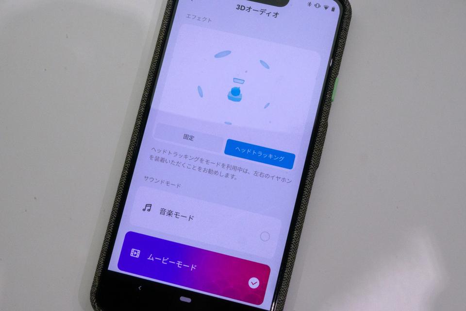 もうひとつ気に入ったのが、3Dオーディオへの対応。Anker独自のアルゴリズムで音源をリアルタイムで処理して、ライブ会場のような音響を実現。ヘッドトラッキング機能をオンにすると、その効果がはっきりわかります。