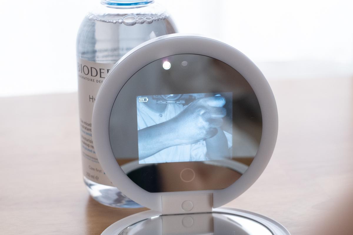 見た目には普段と何も変わりませんが、UVカメラ付きミラーで見てみると……